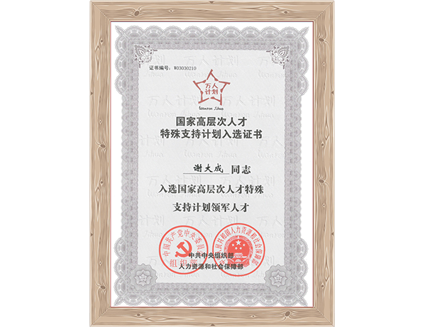 董事長謝大成入選“國家萬人計劃”